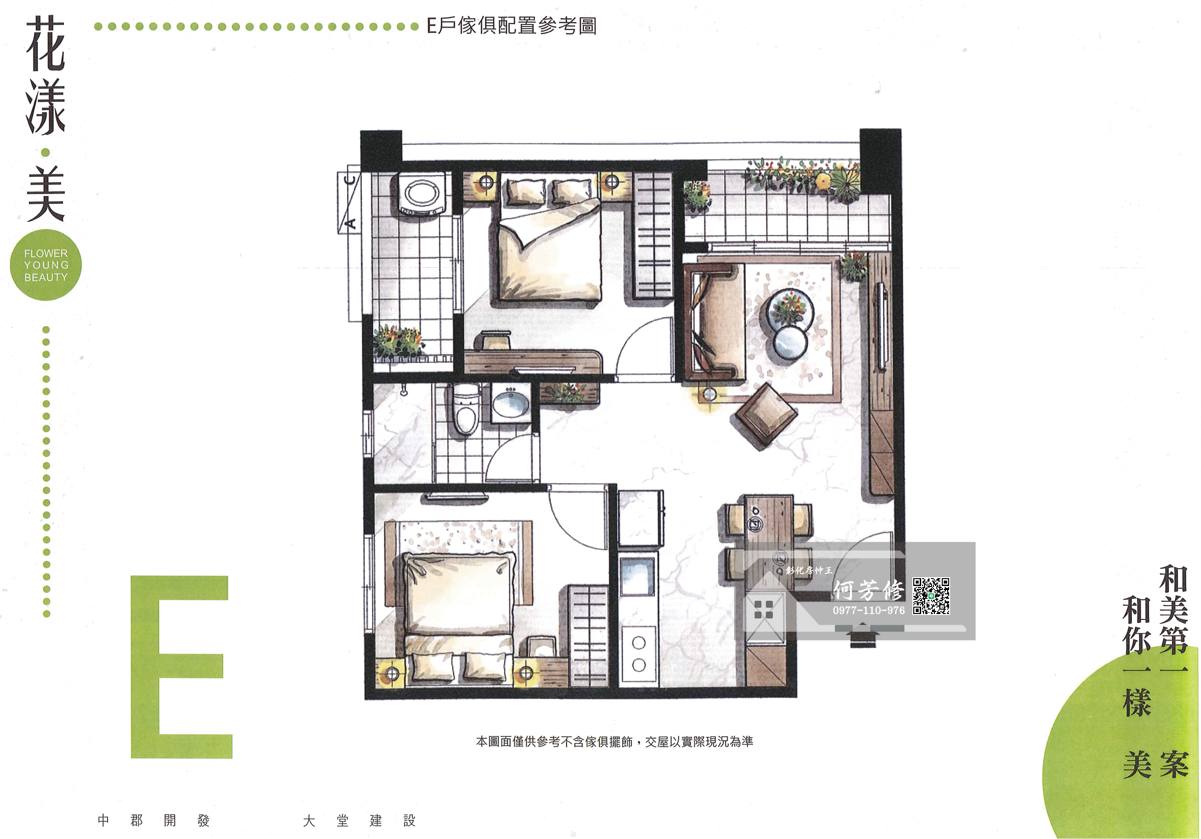戶數只有31戶,說單純也算單純,不過他不算大樓,只能說是華廈,整棟兩房設計,有點可惜的是如此金裝卻沒有管理員,車位只有六個平面車位,不過值得稱讚是他的公設比只有21趴,一樣兩房坪數,他室內大概可以大個兩坪左右★基地位置個人覺得地點算可以接受,和美實驗學校旁邊進去到底就到了~到和美圖書館只要三四分鐘,也算離塵不離城了