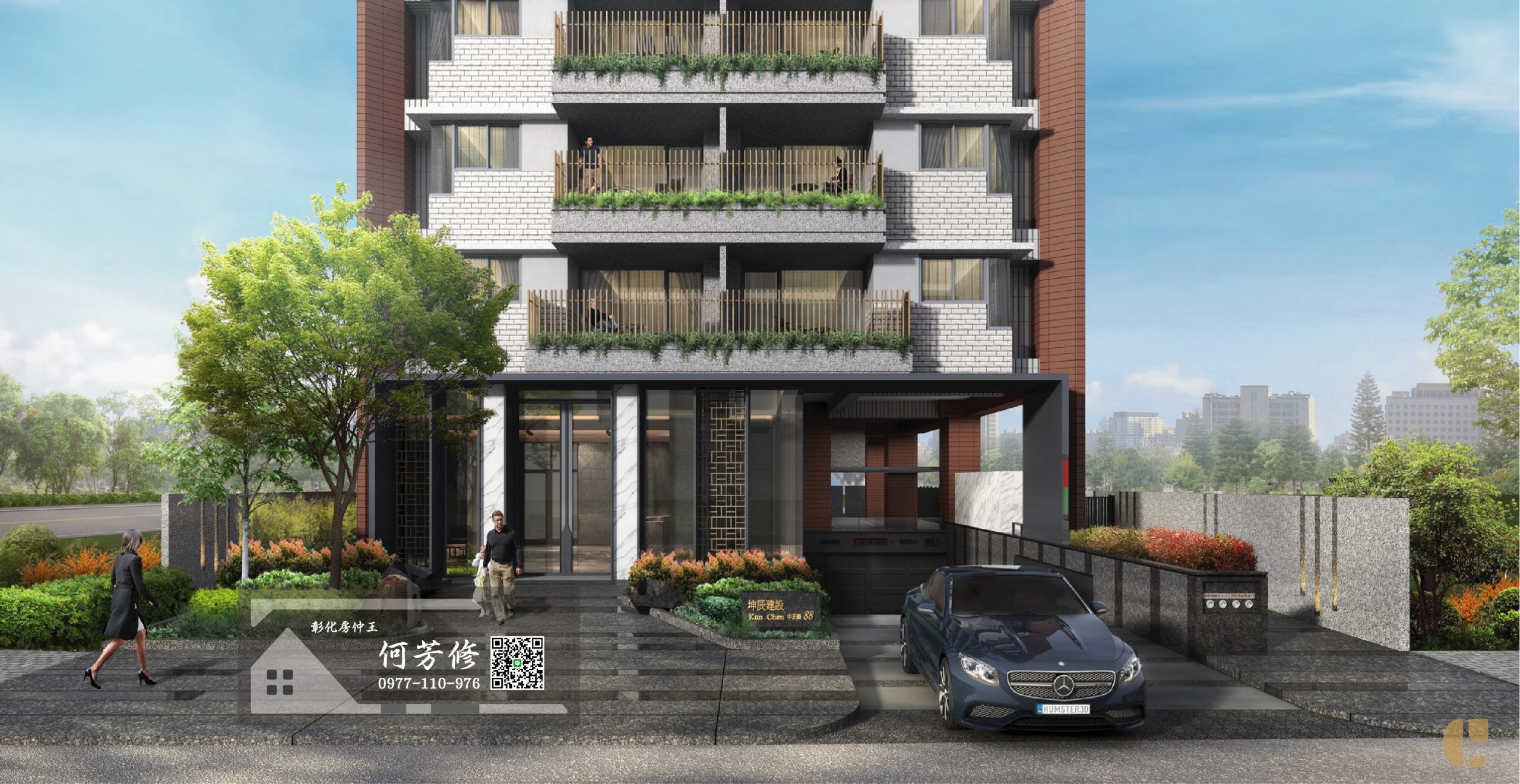 - 建築外觀採現代風格,並運用材質的變化展現建築的現代性,造型時尚壯麗,外牆貼丁掛磁磚搭配石、金屬造型玻璃欄杆及格栅,由專業建築師精心規劃設計展現都會現代住宅意象。