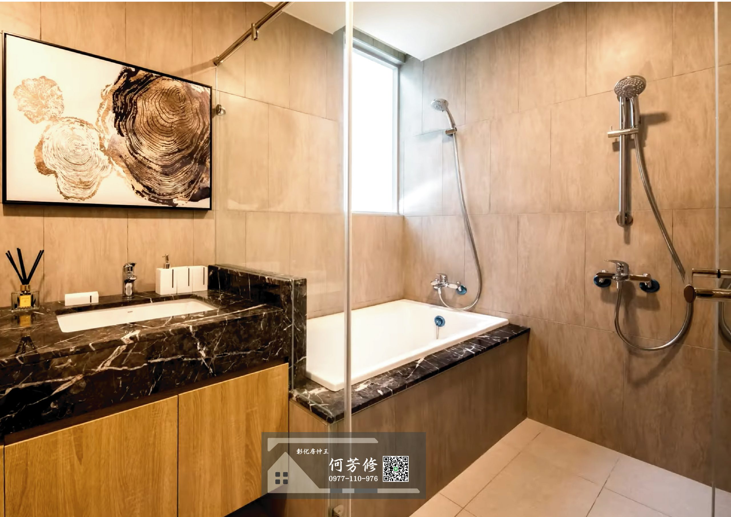 - 浴室:牆面壁磚30公分*60公分磁磚(瑪摩麗磁或同等級磁磚)。