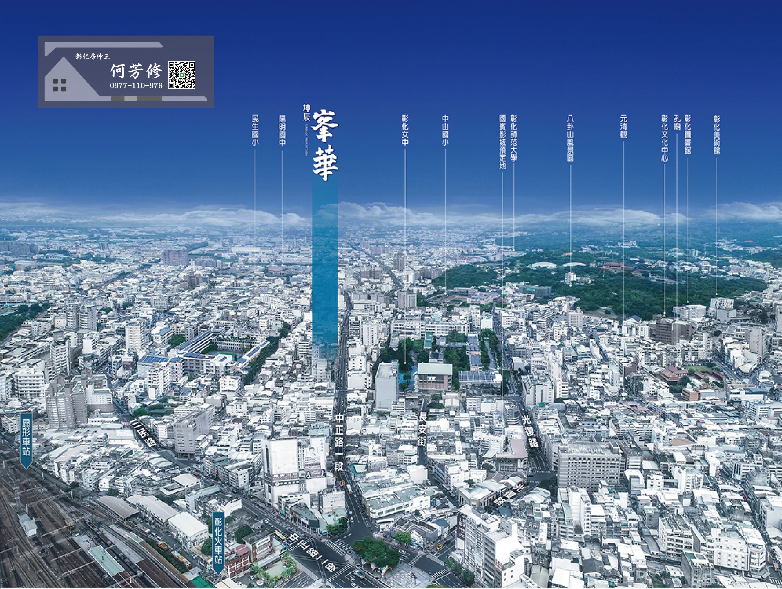 彰化車站高架化催動商業開發、樞紐動力即刻起飛! 「坤辰峯華」 直臨火車站商圈,是彰化最精華地段,生活便利兼具人文薈萃。