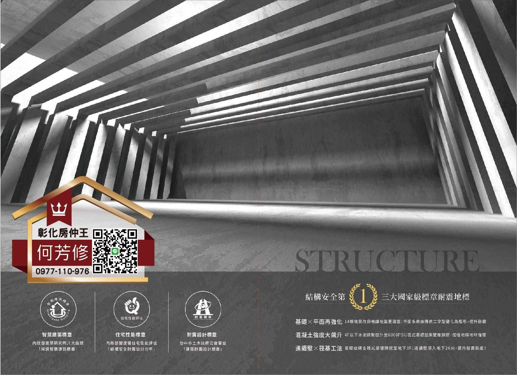 結構宅-符合內政部營建署住宅性能評估「結構安全耐震設計住宅」。