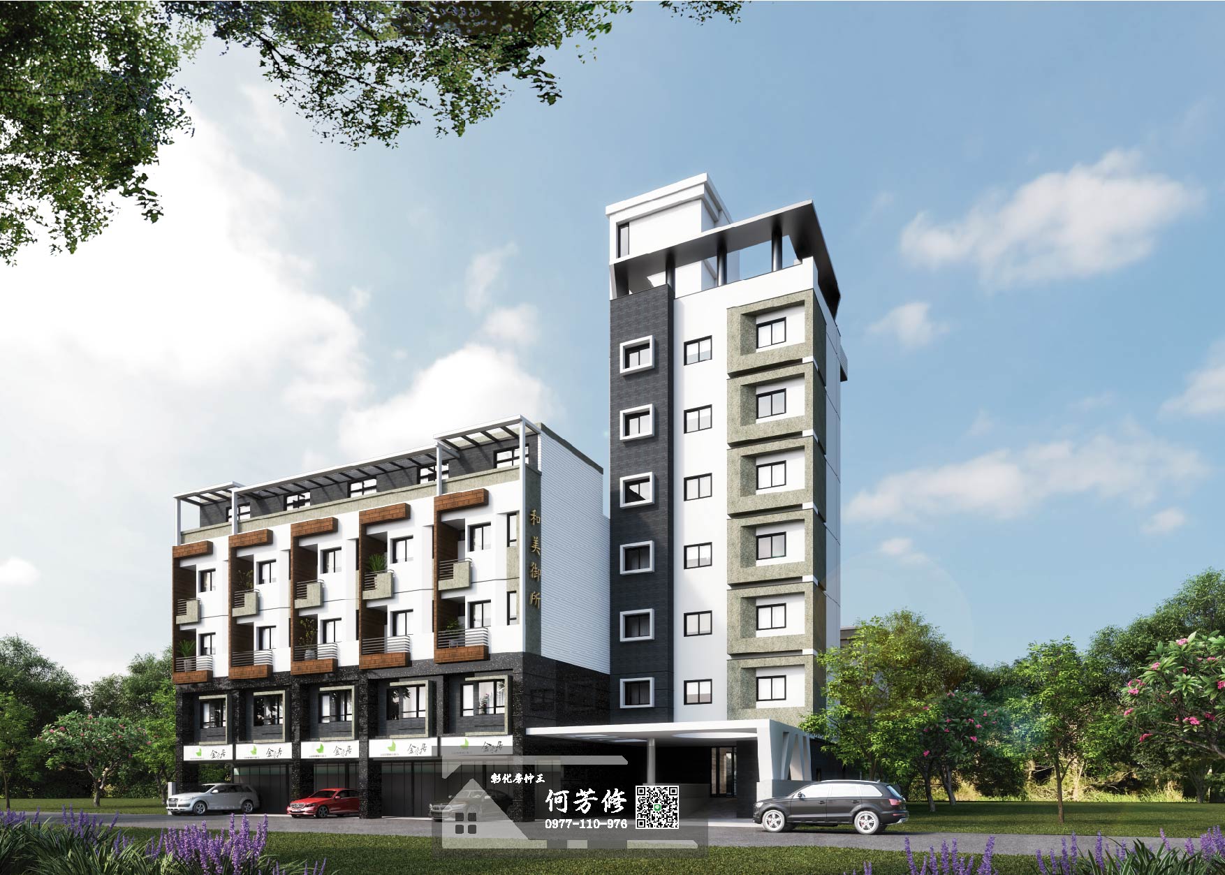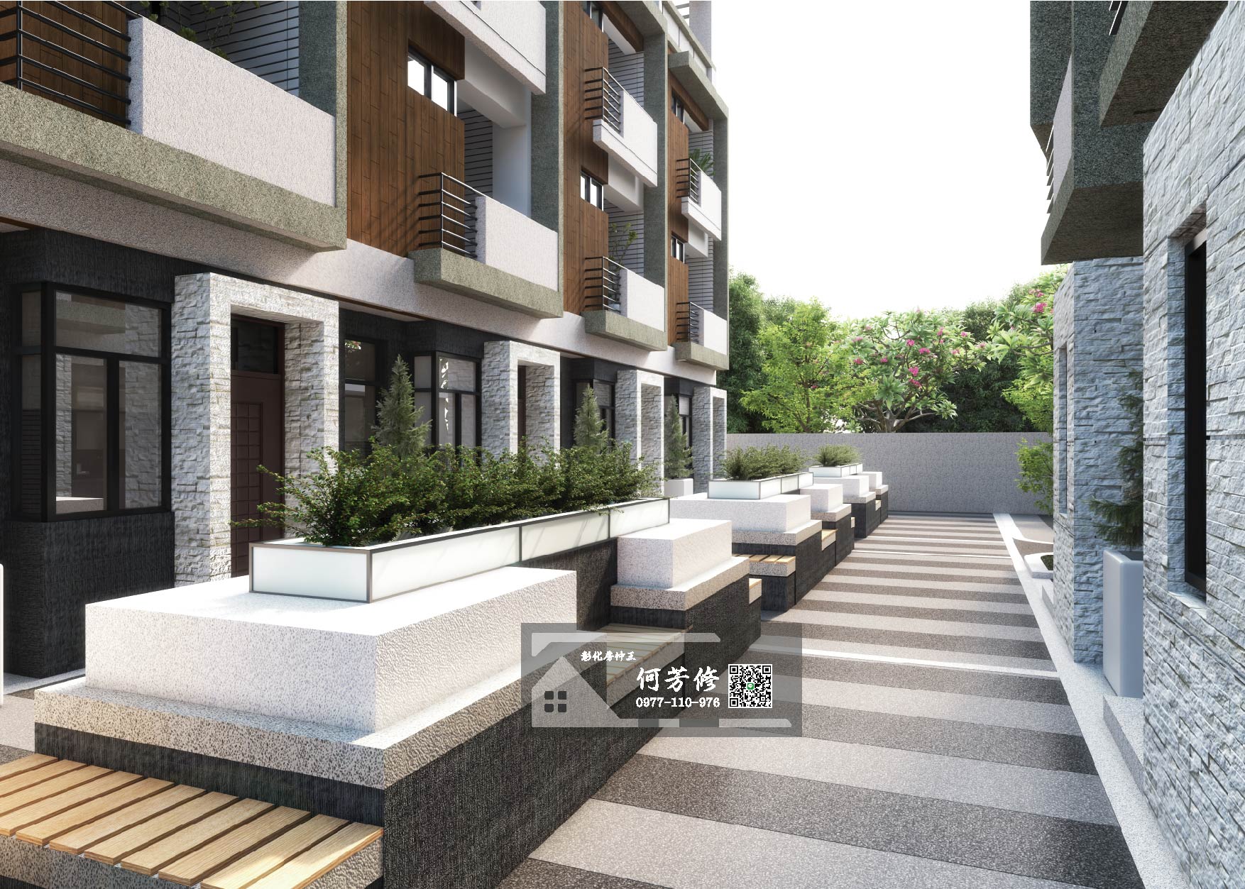 和美市中心人車分道,幼童安全多一份保障,設計前亭為社區增添綠意景觀。