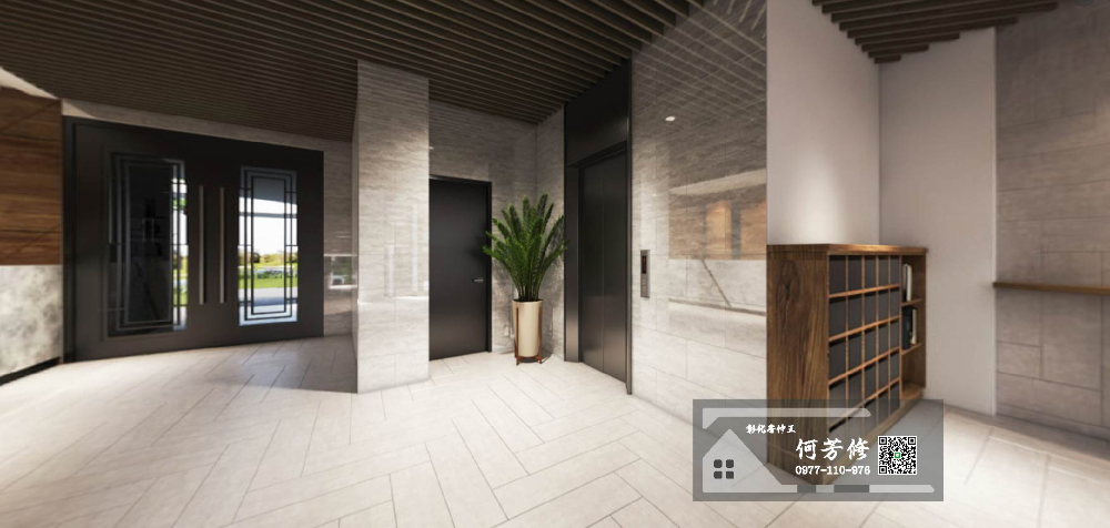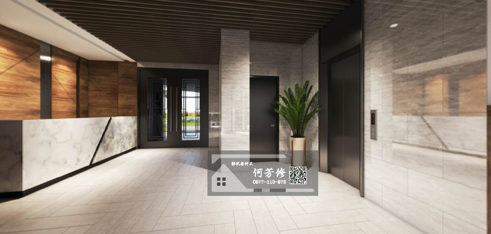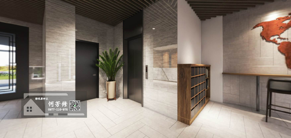 電梯間地坪及牆面採高級磁磚,平頂採用造型天花板