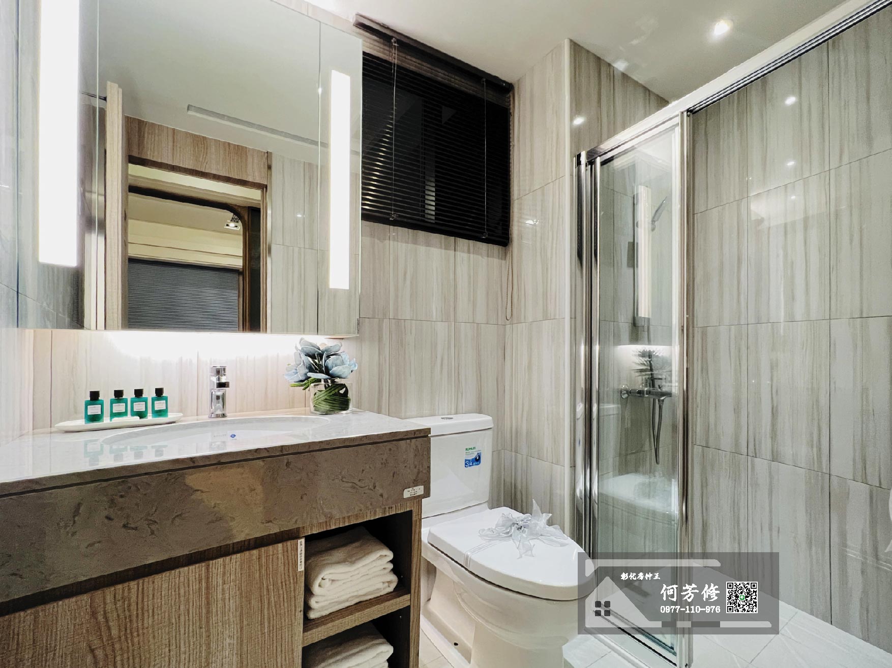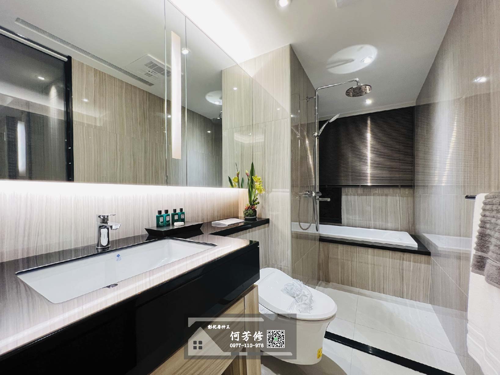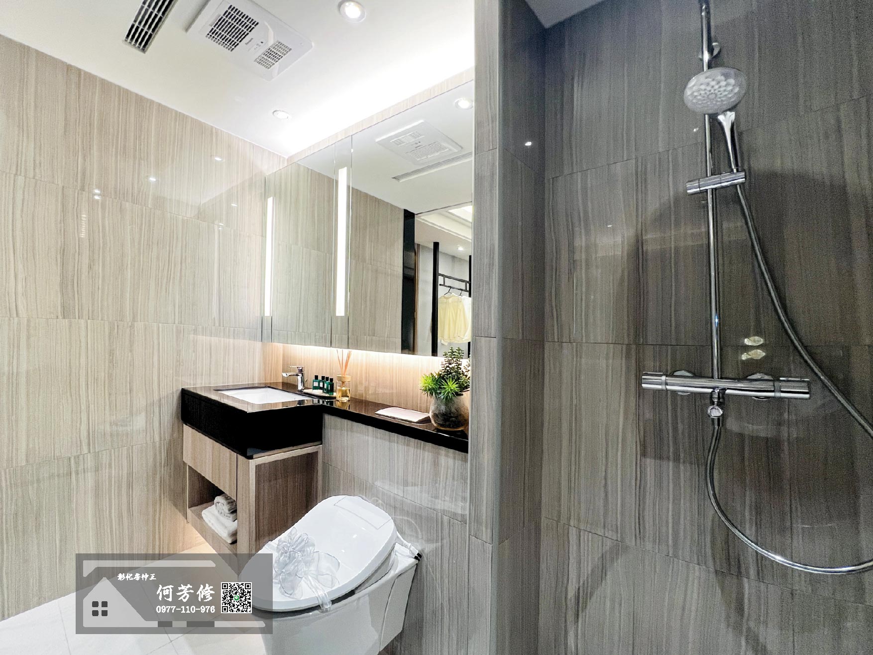 衛浴建材配備更是向豪宅看齊,包括美國KOHLER馬桶和恆溫三出水淋浴柱、日本Panasonic暖風機,連次衛浴都貼心做好洗手台檯面,整體氛圍立刻升級成飯店檔次。