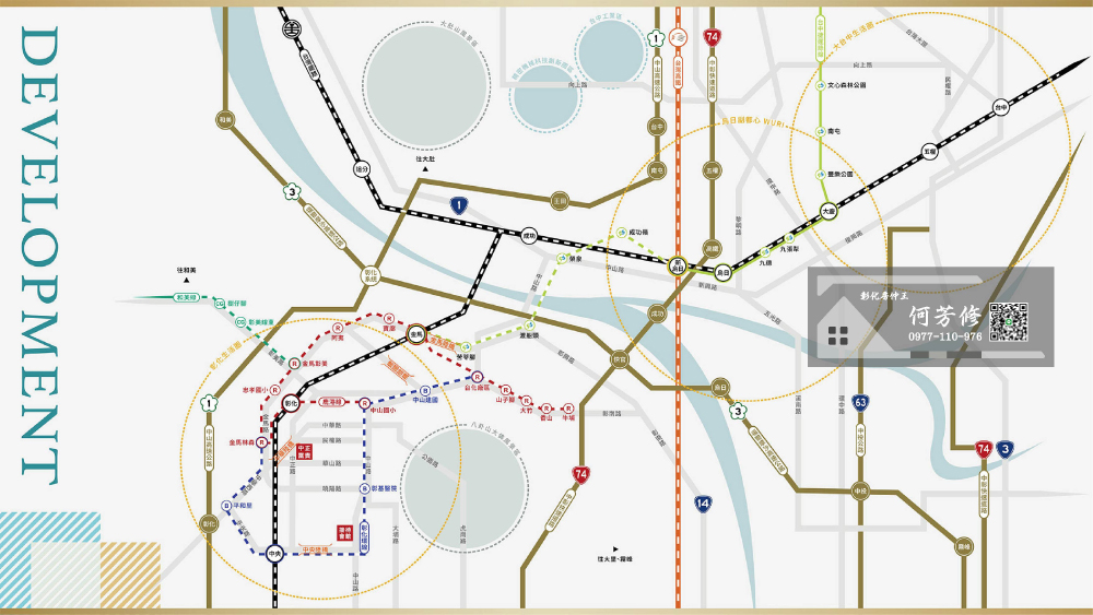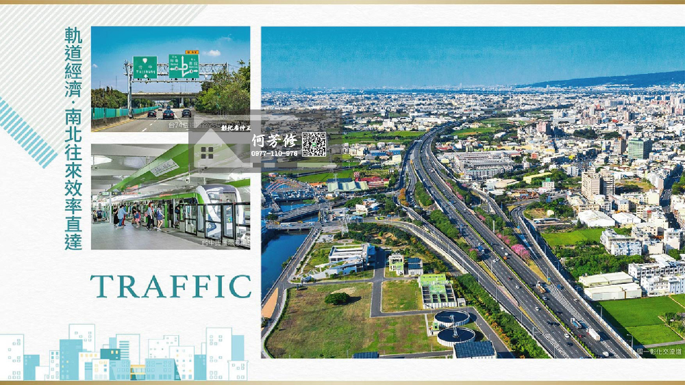 透過74號快速道、國道1號、3號,南北往來效率直達;未來台中捷運綠線延伸,以及彰化捷運建構,密集轉乘串聯都心精華,高速移動台中市區。