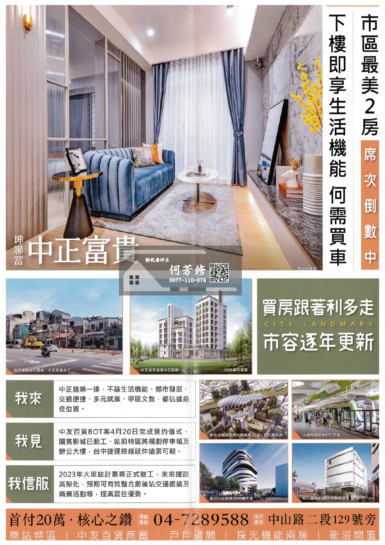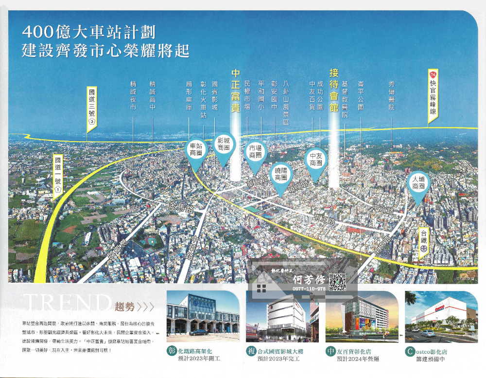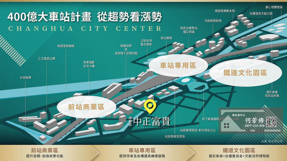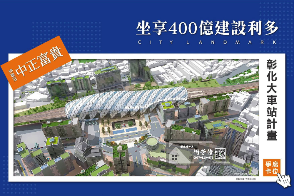 看懂了台中車站更新前後的效應發酵,就懂得現在是入手彰化站前特區的好時機!政府斥資400億經費建設車站,前後站打通,縫合商業機能,中友百貨、國賓影城加碼插旗展業,開發題材不斷,漲勢可期!