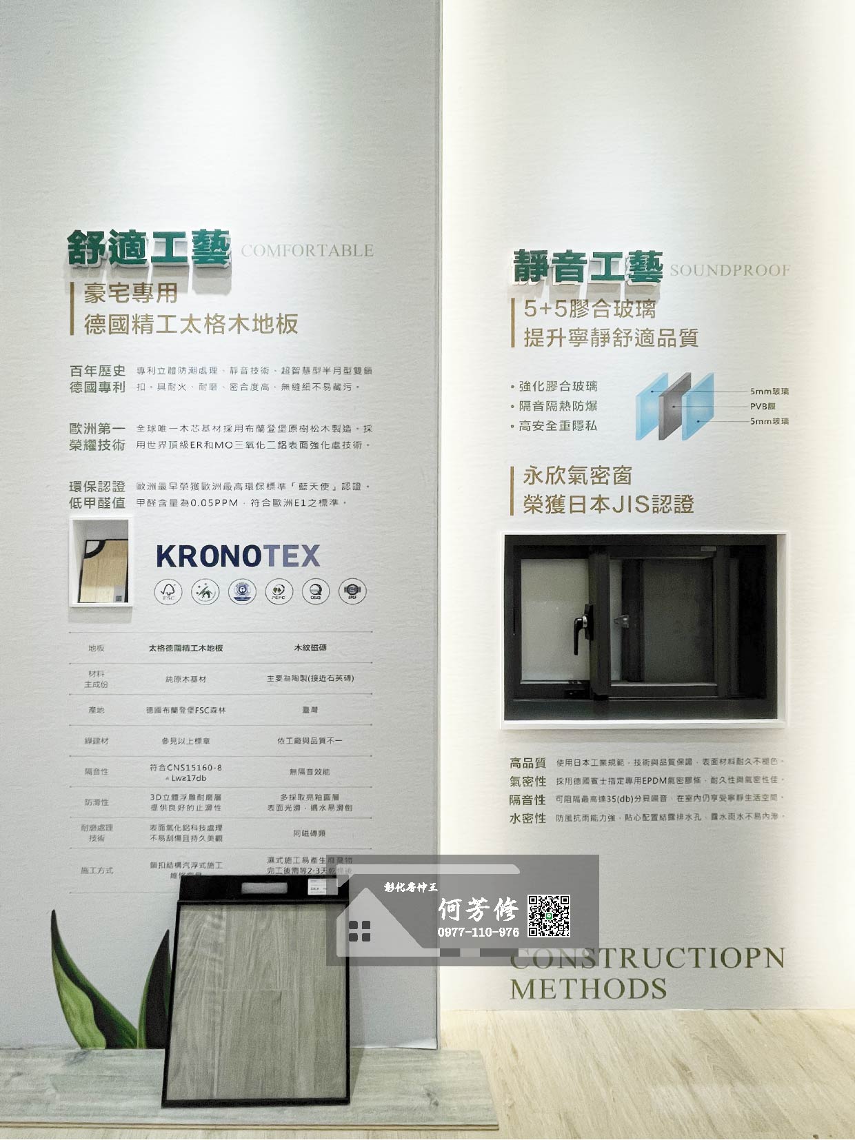 全室採用德國太格耐磨木地板、永欣鋁門窗,舒適隔音佳,大大提升睡眠品質。