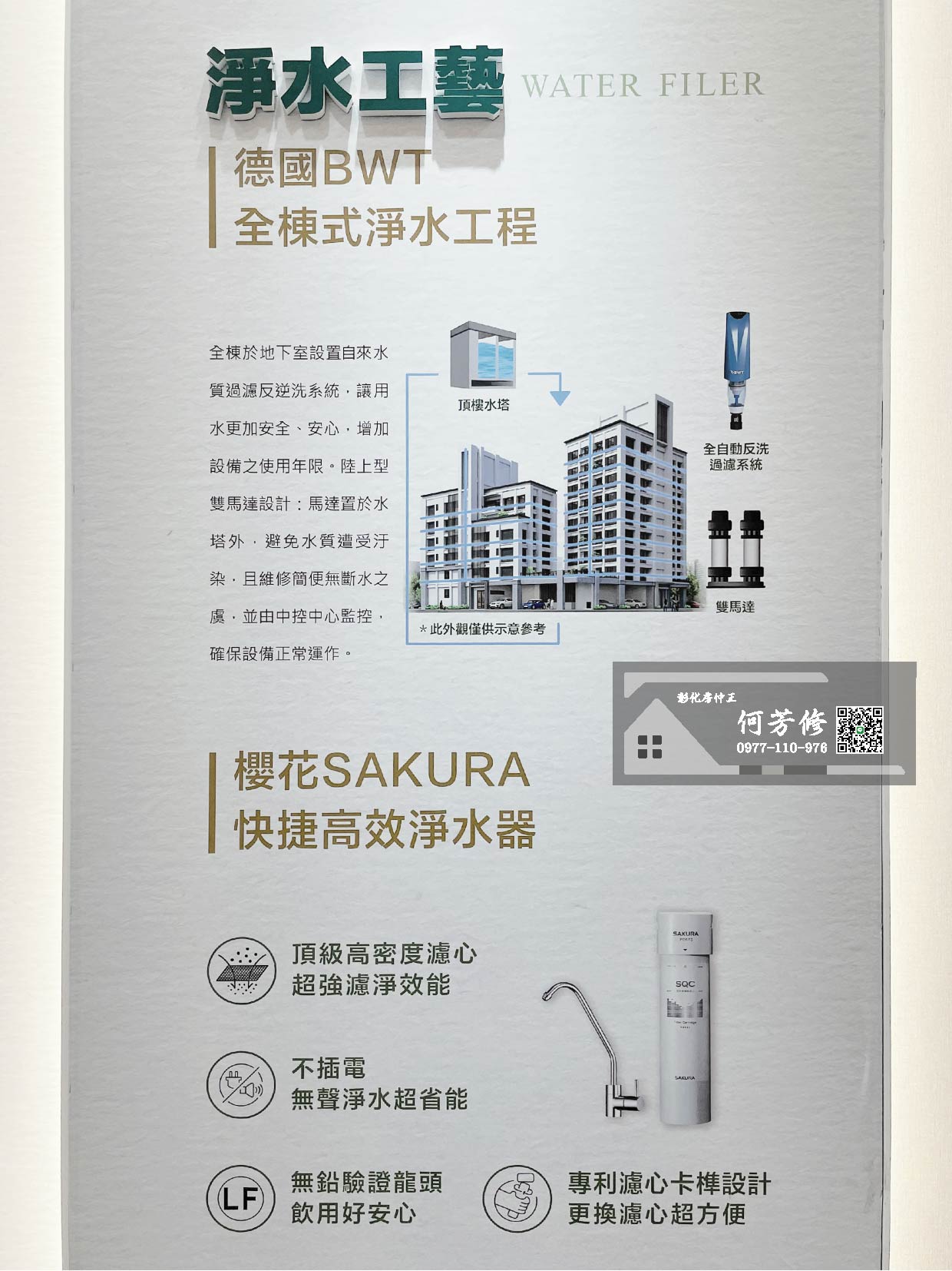 全棟於地下室設置自來水質過濾反逆洗系統,讓用水更加安全、安心,增加設備之使用年限。