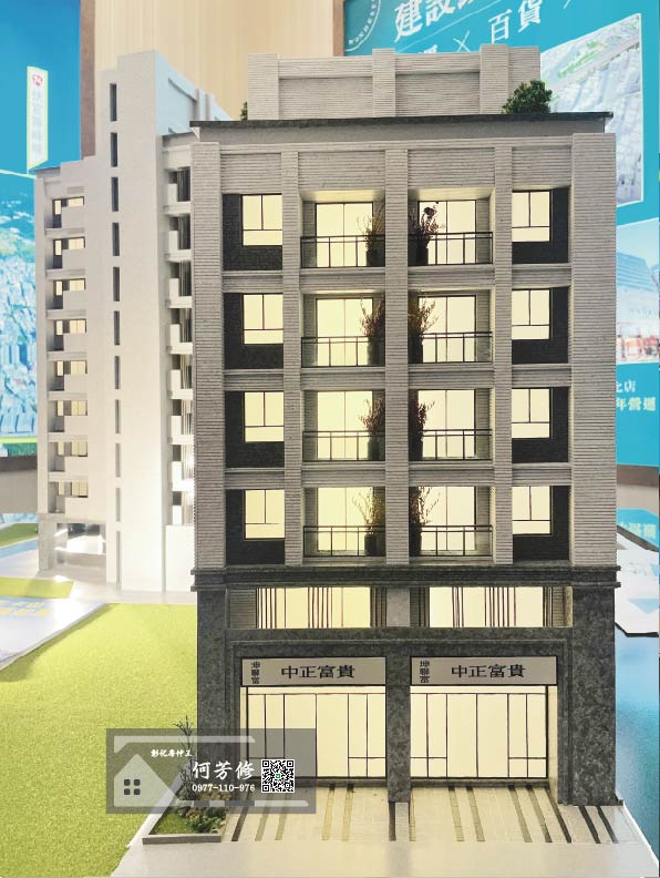「坤聯富 中正富貴」在臨中正路二段規劃2間店面,大門、車道則在後方的6米巷,約282坪基地規劃兩棟大樓,前棟4併1梯,地上6層,後棟3併1梯,地上9層,周邊都是透天,儘管鬧區地段基地難免不方正,但建商盡可能讓每個開窗面都朝向有棟距的地方,設計可見其細膩。