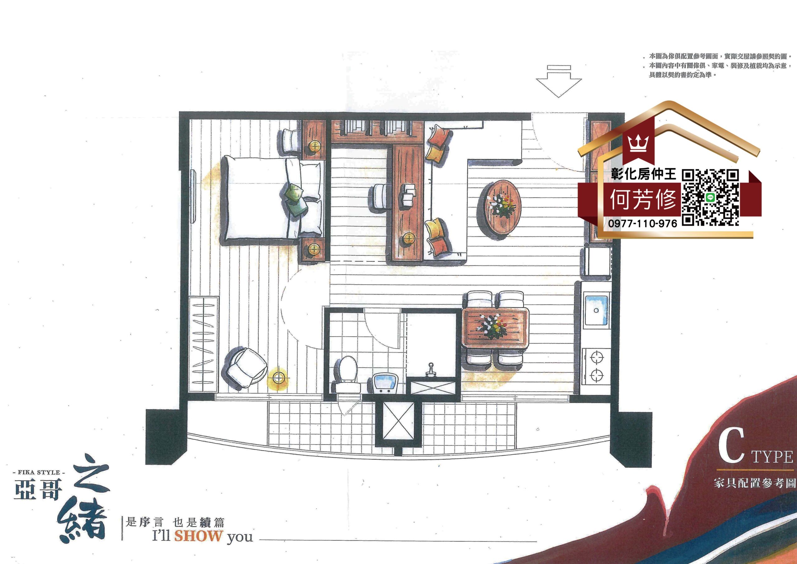 1房(23坪)|甲棟C戶(23坪) 傢俱配置參考圖