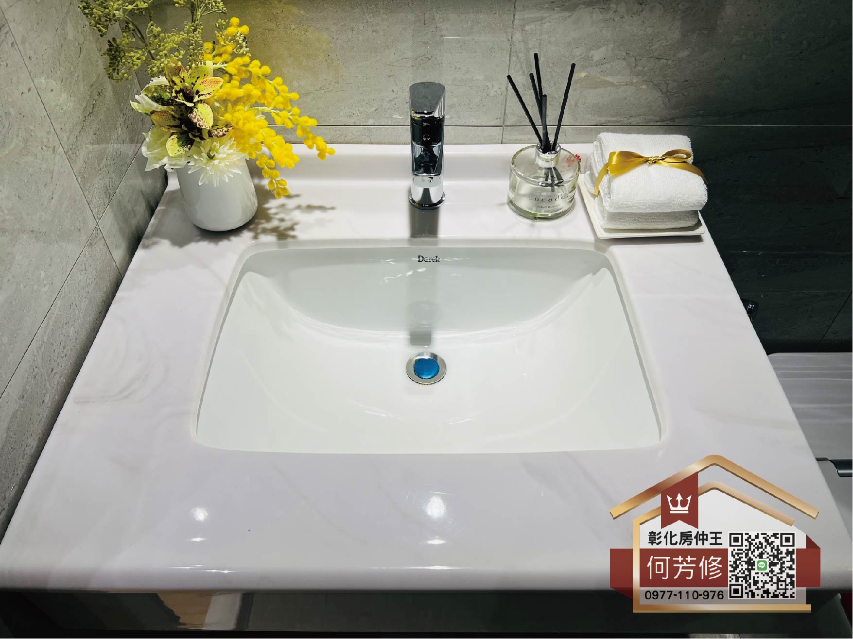 乾濕分離的衛浴設計中,主臥選用了德瑞克或同等級的單體馬桶和暖風機。浴室則選用高級面盆,並搭配精緻的水龍頭和高品質的浴櫃。