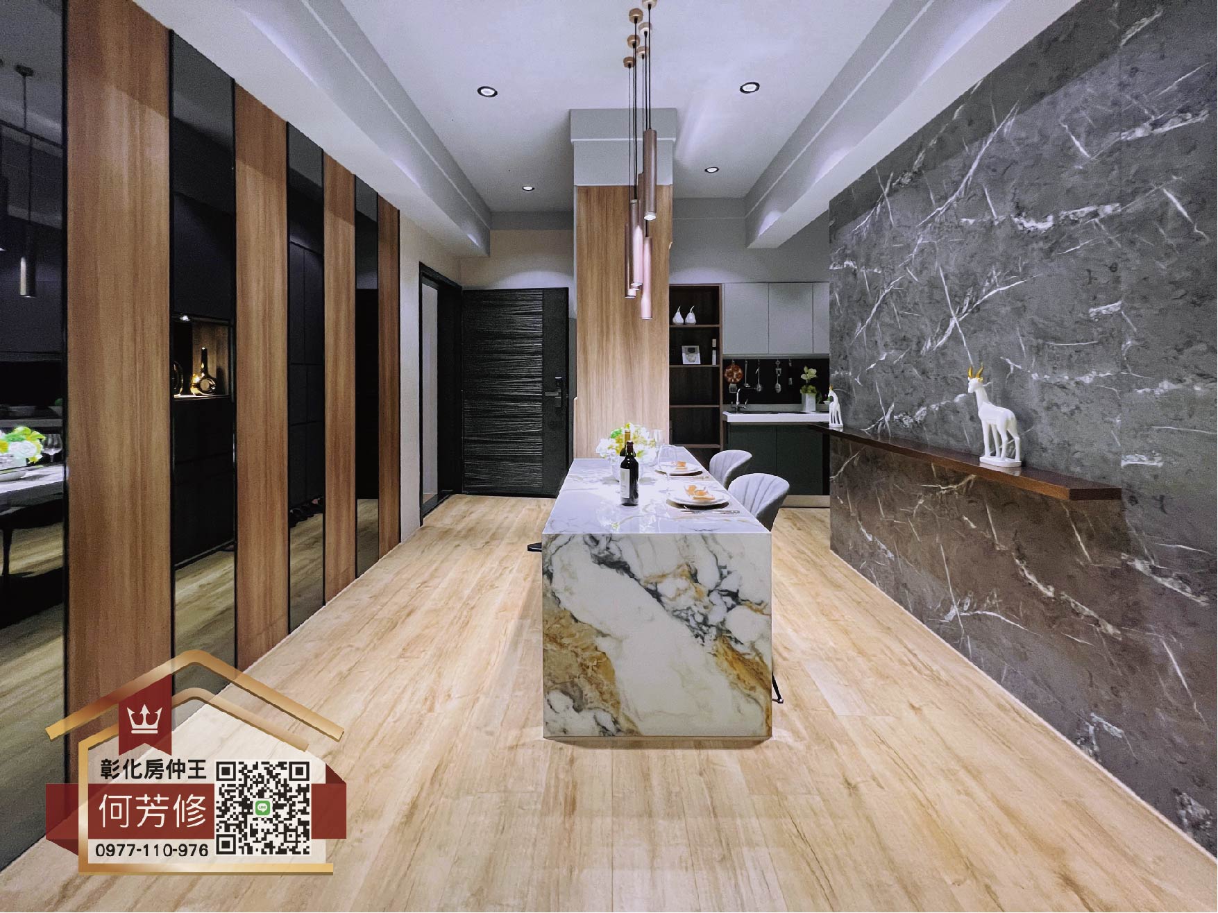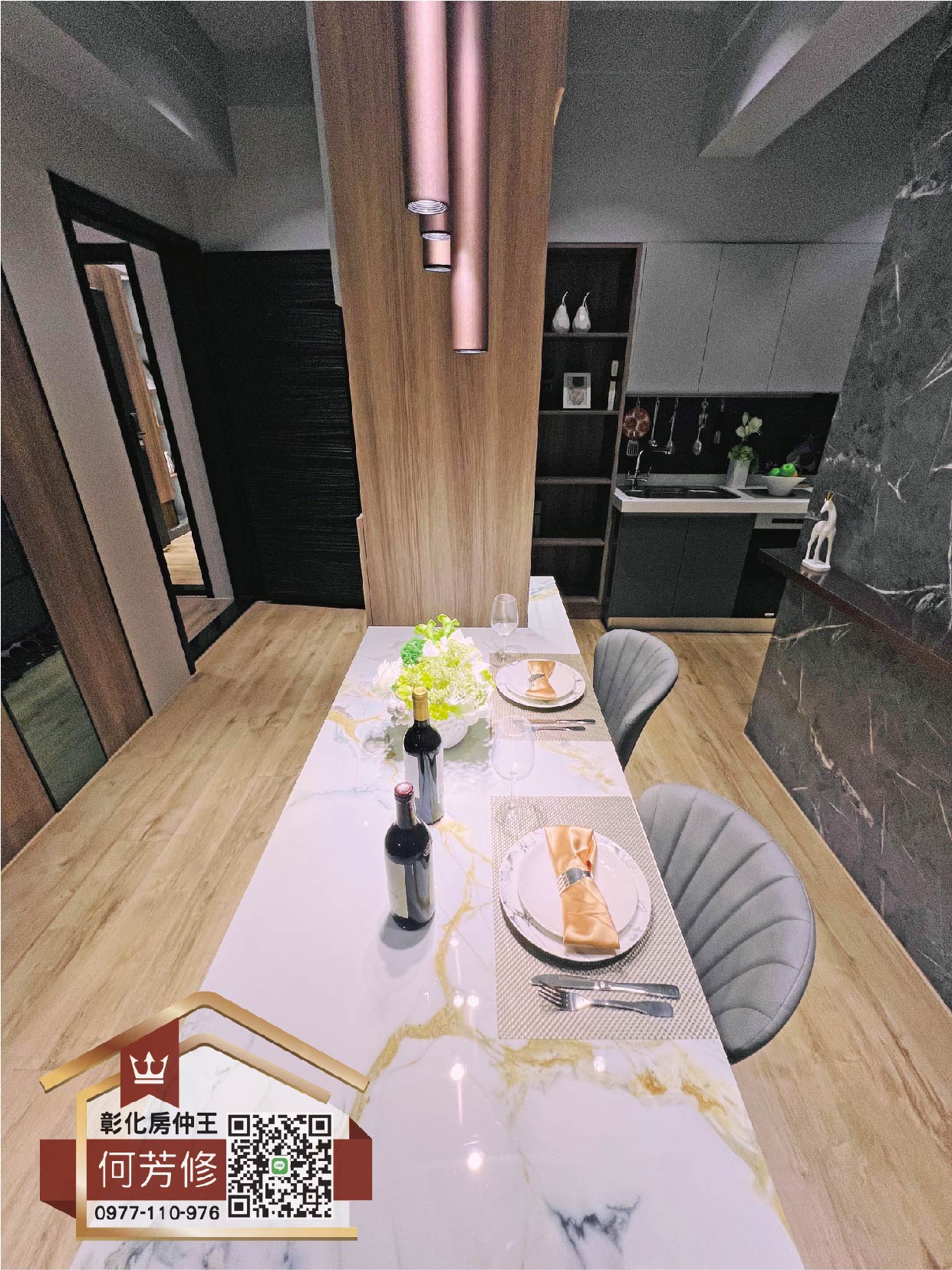 透過玄關餐廚櫃的設計延伸,創建了一個咖啡和紅酒吧檯區域,豐富了餐桌和廚房的功能性。這不僅輕鬆營造了家中的休閒小酌氛圍,更是小家庭或獨居生活的完美通透開放空間。