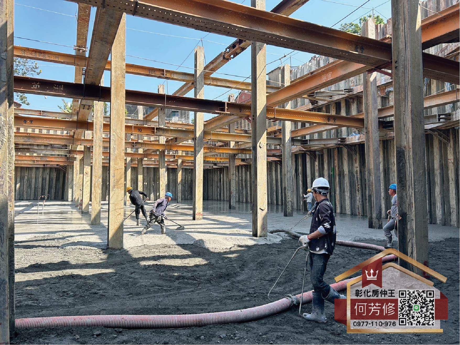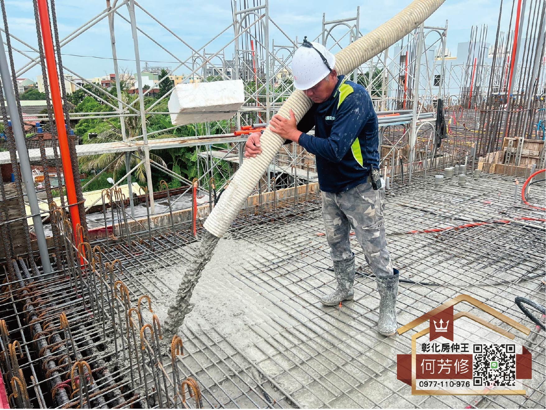 結構體的階段就是模板組立、鋼筋綁紮、水電配管、灌漿的無限輪迴,從地下室開始往上至一樓,周邊的景色也逐漸可以看見樹木及天空,隨著樓層攀升,我們看見的視野也將越來越廣闊~