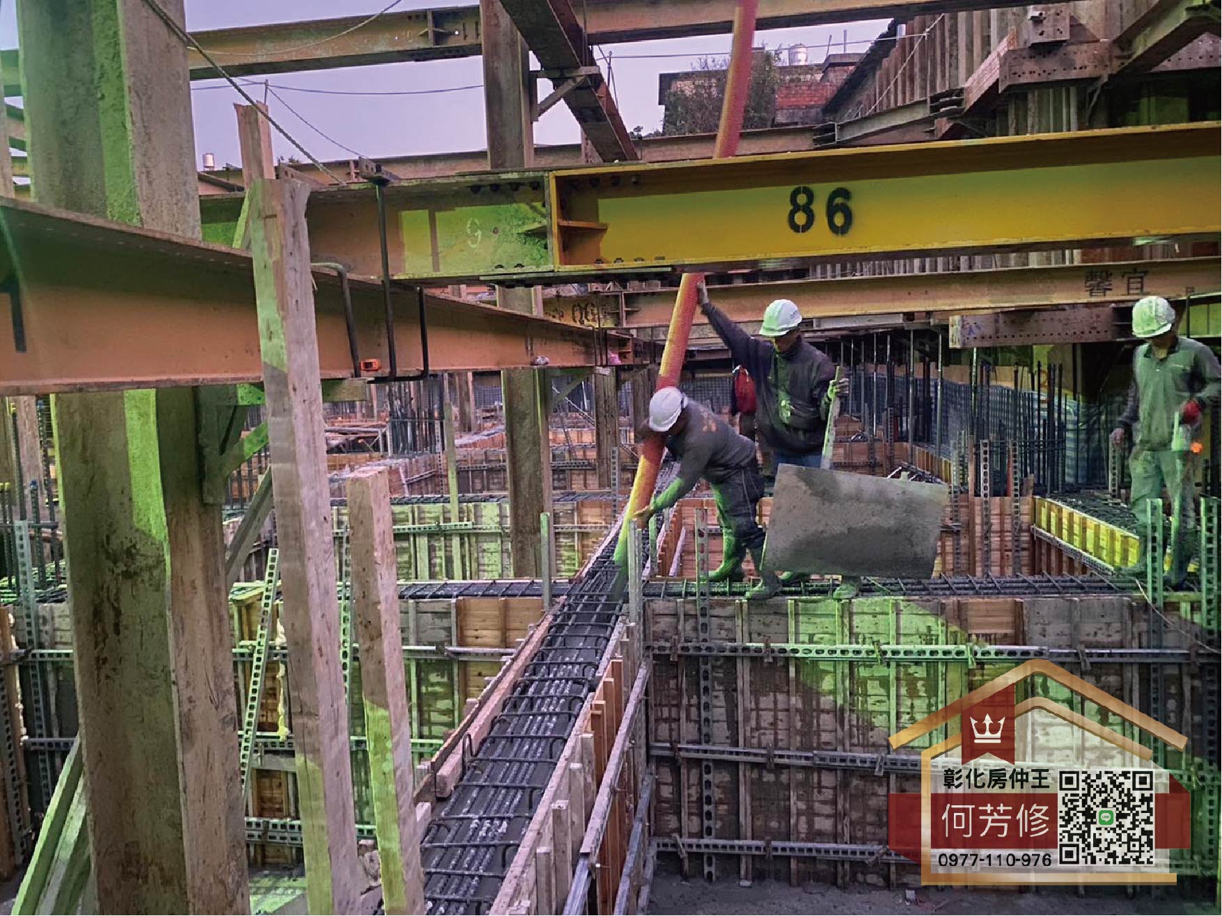 每個樓層版灌漿之間的工地日常是鋼筋、水電、模板的施作,同一個時段可能見到不同的工班進出忙碌,現場的情景可謂是熱鬧。工作同步進行、機具同時運作,怎麼在不互相影響的情況下相互配合,這都有賴工地主任超強的支配能力,看似平靜的畫面,其實很忙碌!