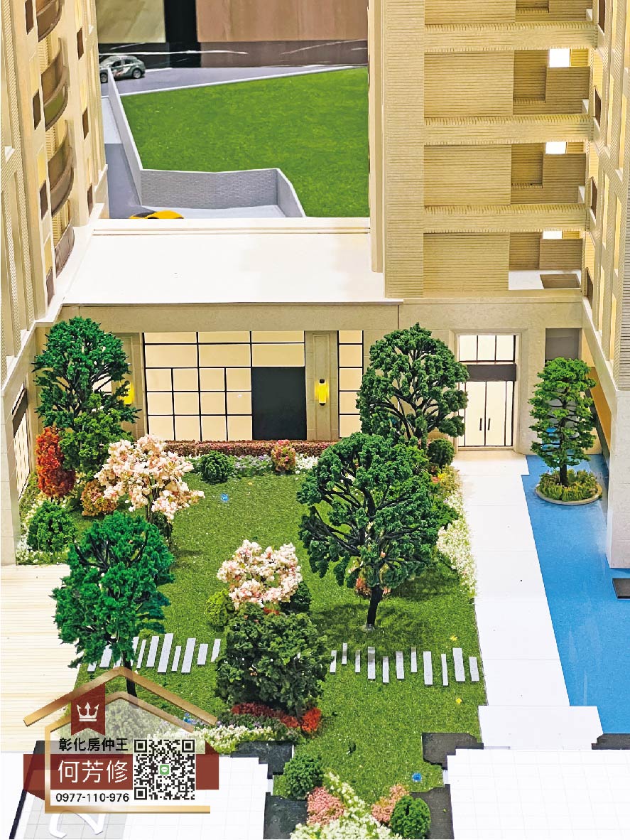 社區內最大的棟距離約11米,四周的景觀包括八卦山的青翠山脈、郁郁蔥蔥的田野和透天厝的永久棟距,視野開闊,不管選擇居住在哪一棟,每一戶都享有絕佳的景觀。